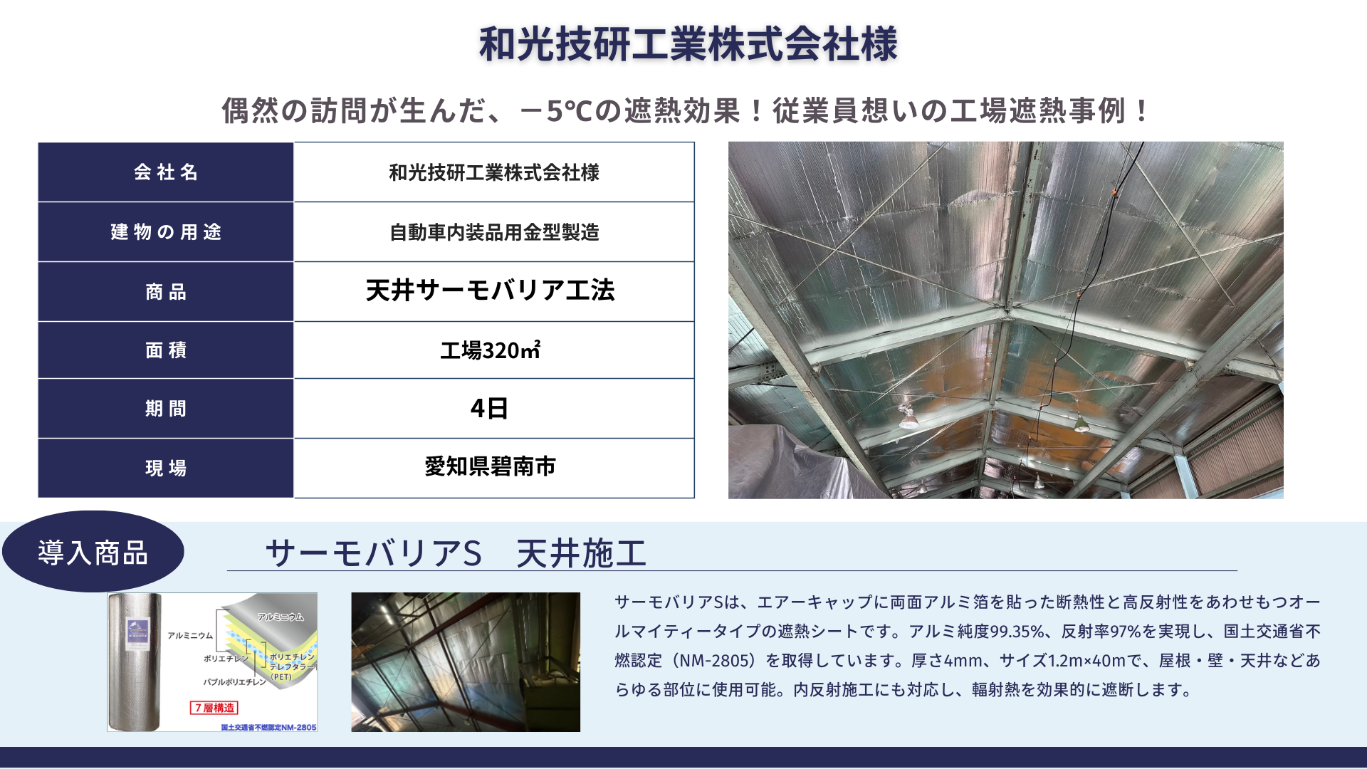 愛知にお住いの方限定で、工場へ訪問させていただき、実際に熱を当ててサーモバリアの効果を体感いただきます。